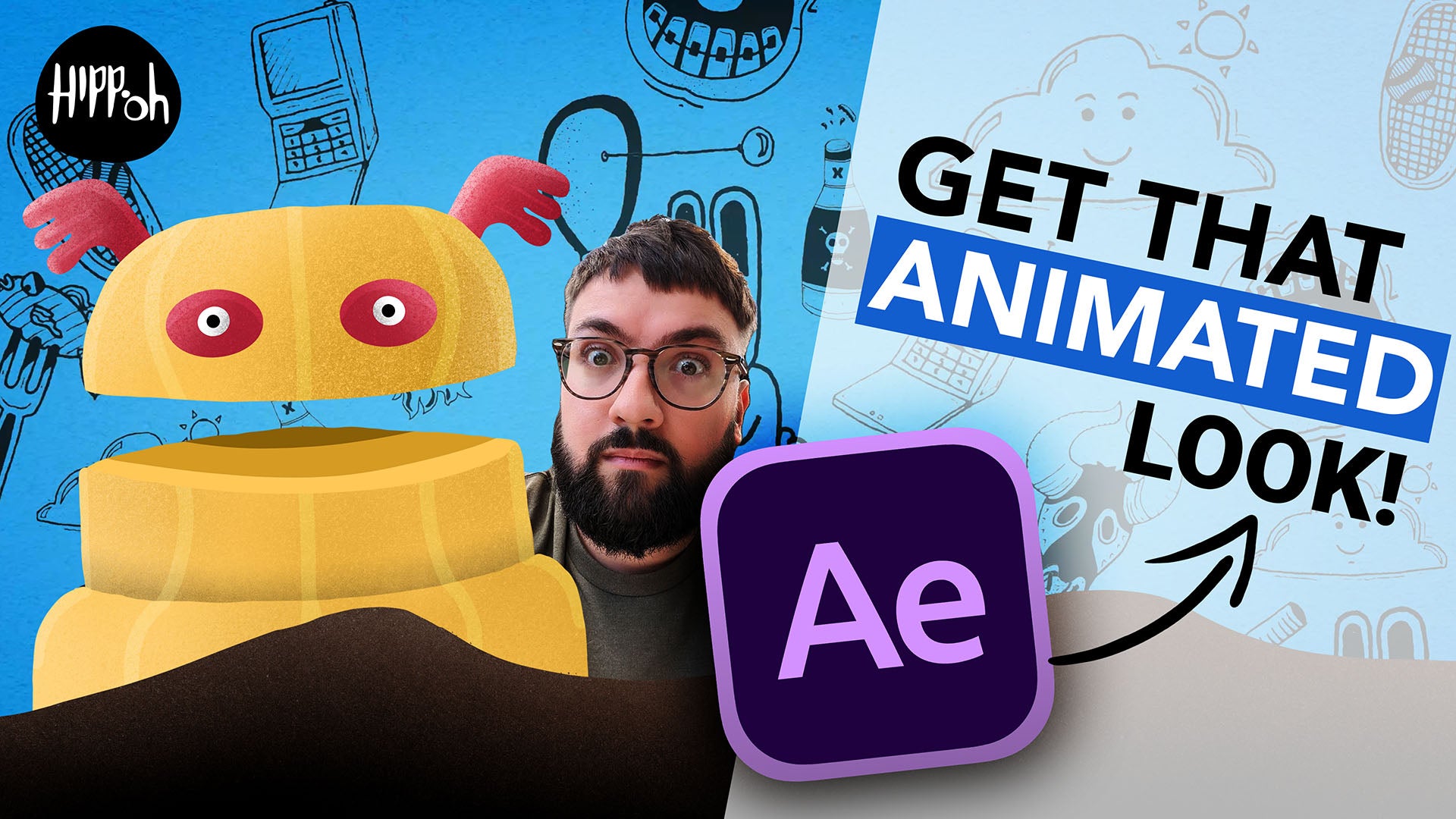 Early days of hippoh were spent drawing doodles with a 0.4 Mitsubishi Uni Pin fineliner, scanning it, then bringing it to life in After Effects.